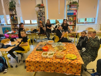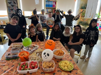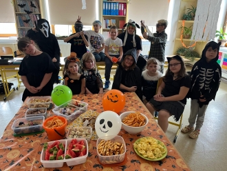 Na děti čekala po obědě nejprve halloweenská šifra, potom jsme hráli oblibenou pantomimu a nakonec židličkovanou. Děkujeme maminkám za bohaté a velmi nápadité občerstvení, myslím, že si děti párty moc užily. Ačkoliv pochází Halloween z anglosaských zemí, každý rok k nám proniká více a více, a především děti tento svátek moc baví, proto si děláme ve škole oslavu již několik let. Českým dušičkám se budeme věnovat v příštím týdnu, kdy se podílíme na společné akci s Obcí Majdalena a SDH Majdalena.Těšíme se na vás!